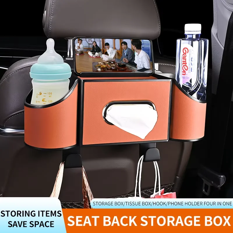 Chair Back Leather Storage Box Mobile Phone Holder Cup Holder Tissue Box Auto Parts Suitable for All Models