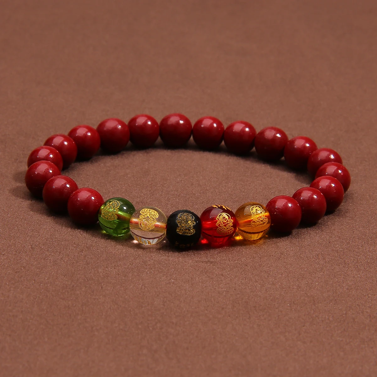 Hot Sales Fashion Purple Gold Sand Beads Cinnabar Five Way Wealth Bracelet Women Jewelry Bangles Ornament Bracelet for Unisex