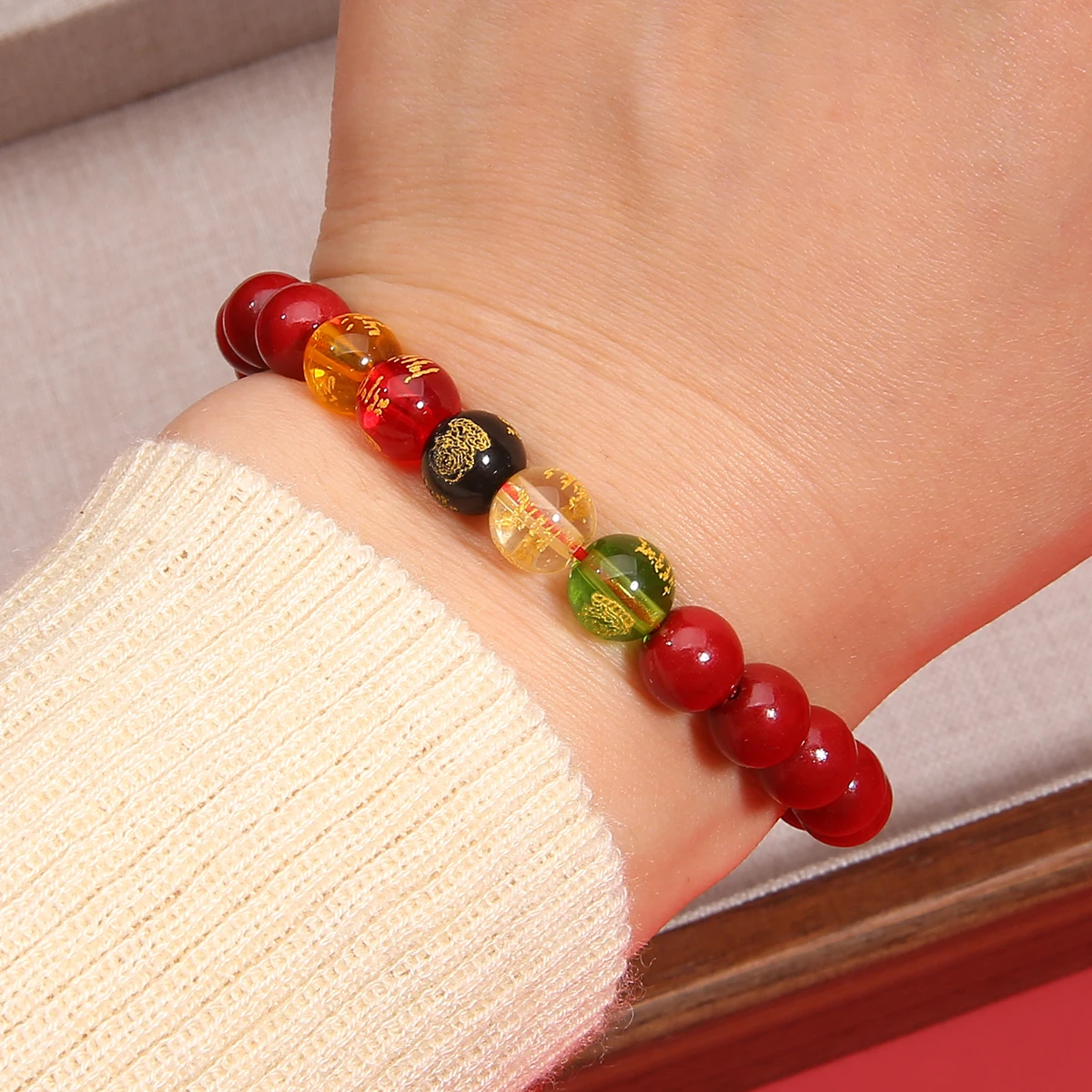 Hot Sales Fashion Purple Gold Sand Beads Cinnabar Five Way Wealth Bracelet Women Jewelry Bangles Ornament Bracelet for Unisex 159 sales